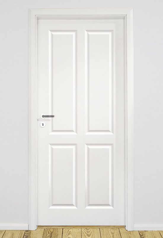 Türaufbau – ca. 40 mm MDF massiv mit gefrästen Feldern und flächenunterbündiger Aufdoppelung, 3-seitig gefälzt,