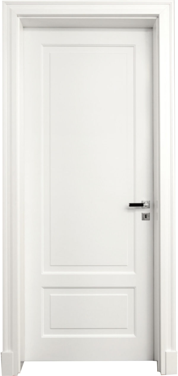 Türaufbau – ca. 40 mm MDF verleimt mit gefrästen Feldern und flächenunterbündiger Aufdoppelung, 3-seitig gefälzt,